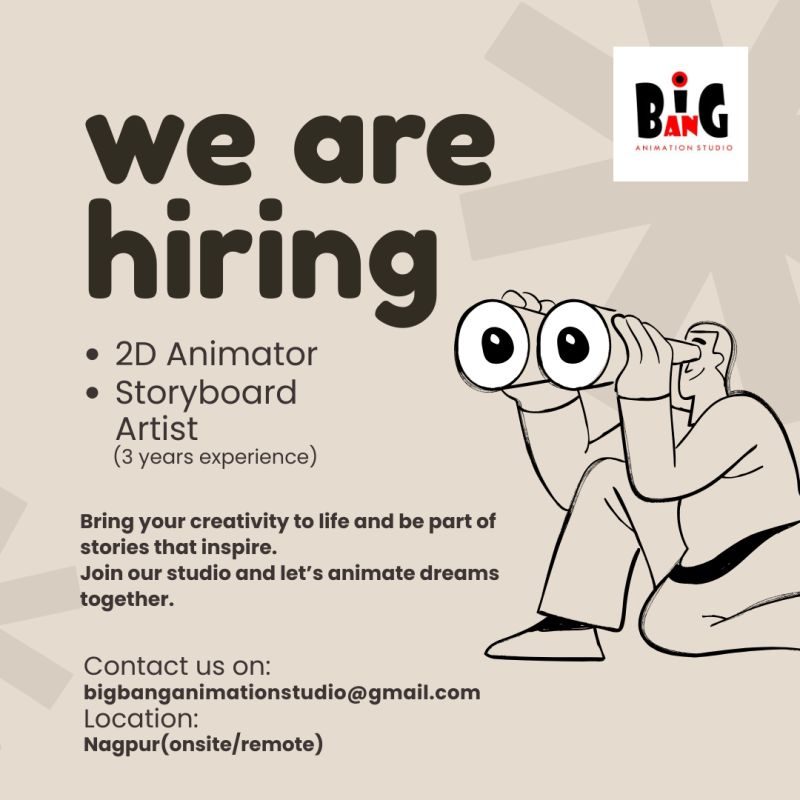 Send your resume and showreel to their email bigbanganimationstudio@gmail.com