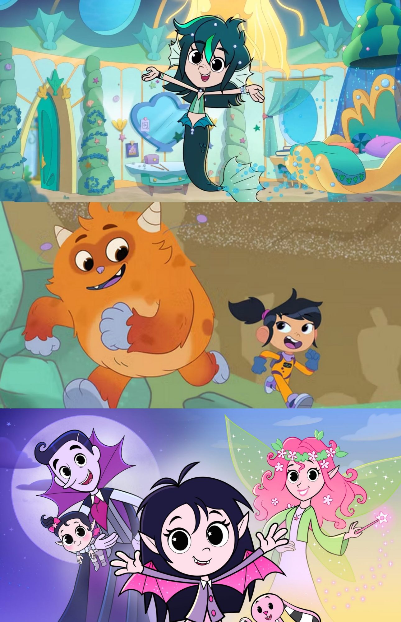 From the world of Isadora Moon, and the imagination of Harriet Muncaster, based on the best selling books of the same name. We meet Emerald as her life changes from being a regular mermaid living with her Dad and his girlfriend above their restaurant, to inheriting a princess step-sister, and becoming a princess herself when her Mum marries the Sea King! Navigating this new world, living between two homes and being part of a blended family, is all new to Emerald, but luckily Theodore the Sea Unicorn and Shelly the Sea Turtle are there to help her with the transition and provide plenty of laughs along the way.