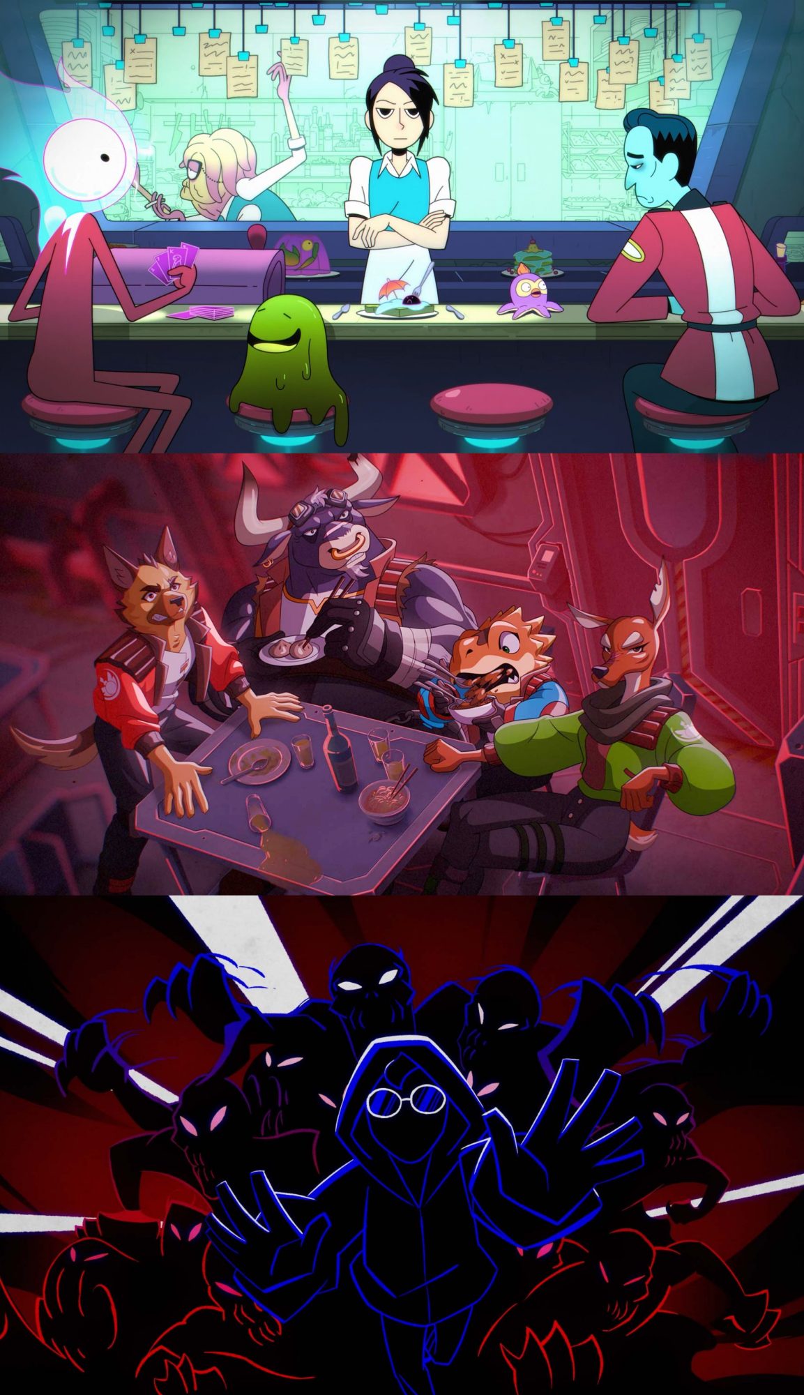 Welcome to the Sunny Side Down- a diner hanging inexplicably in front of a supermassive black hole. Our heroes are Nat, a human waitress with mad scientist tendencies that’s scheming up how to safely escape the black hole’s grasp (and her crappy service job), and Yabba, the ancient diner cook that knows all but tells nothing. They work together to serve the wrinkly old timers who refuse to move on into the black hole. This series of six, 2-minute animated episodes focus on which weird aliens got sucked in this time, parodying classic sci fi properties like Star Trek, Terminator, The Matrix, etc, while developing an audience connection to Nat and Yabba’s relationship.